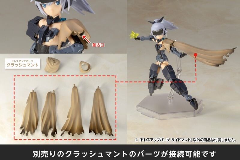 フレームアームズ・ガールやメガミデバイスに装着することでキャラクターの両側面を覆うマントになります。